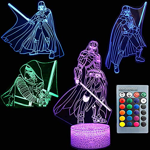 SNOMYRS Lampada notturna con illusione 3D di Star Wars, quattro modelli interstellari, 16 colori che cambiano con Smart Touch e telecomando (Super Hero 3)
