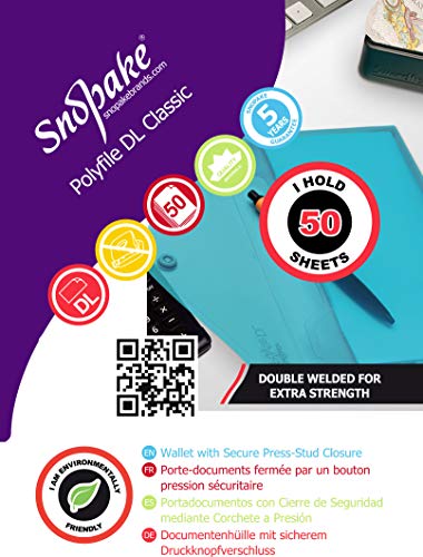 Elegante chiusura con bottone a pressione in colore coordinato è progettata per durare e garantisce che il contenuto sia sicuro mentre sei in movimento. Realizzato in polipropilene resistente, resistente e facile da pulire. lo Snopake Polyfile ha un'attraente finitura trasparente superline che consente al contenuto di essere facilmente visibile