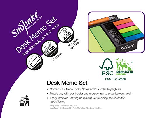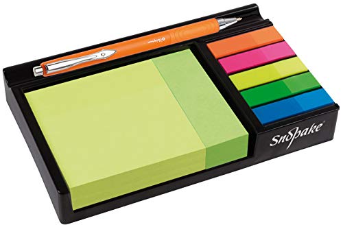 Snopake 15848 - Set di note adesive al neon e evidenziatori indicizzati, vassoio nero, colori assortiti, 76 x 76 mm