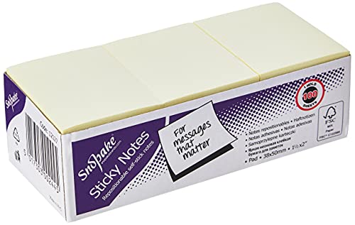 Snopake uses top quality materials for Sticky Notes, without endangering forests. We proudly carry the FSC logo to show that our materials come from sustainable forests.Measuring 50 x 38 mm, 12 individually wrapped pads consist of 100 sheets of high quality Sticky Note paper, perfect for writing all your important notes
