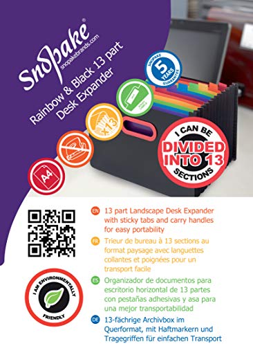 Snopake - Organizer a soffietto da scrivania, formato A4, colore: nero e arcobaleno 13-Part