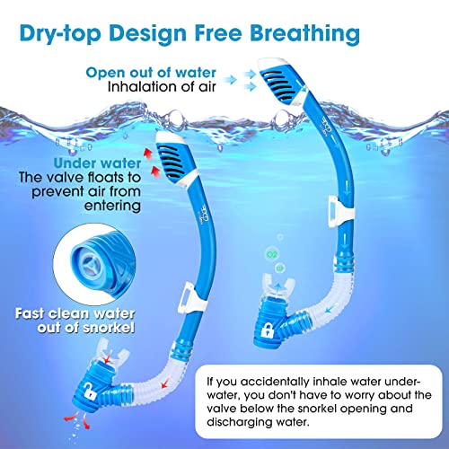 【Questo boccaglio per bambini adotta】 il design più stabile della valvola galleggiante a secco e può essere fissato sulla maschera da snorkeling con una fibbia. Si tratta di un'ottima funzione di sicurezza. Durante le immersioni e lo snorkeling sott'acqua, il bambino può godere di una respirazione rilassante e libera.