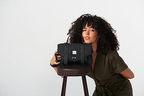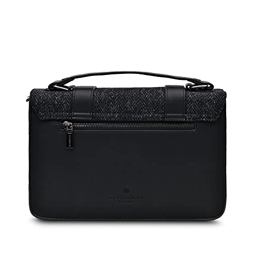 Snow Paw Harris Tweed - Borsa a tracolla grande a spina di pesce, colore: Nero