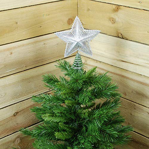 Snow White 22cm Silver Glitter Tree Top Star - Decorazioni per albero di Natale - Tree Toppers