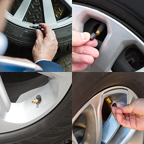 ❤ TAPPO VALVOLA + INSERTO VALVOLA: Poiché la valvola dell'auto è già parzialmente assemblata, la gestione è estremamente facile. Comprensivo di tappo della valvola nero e attacco della valvola.