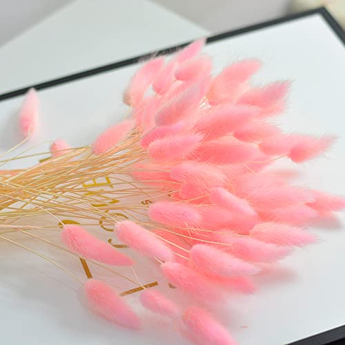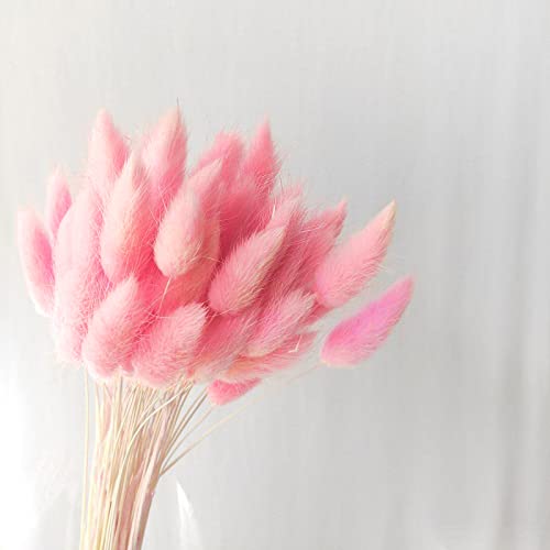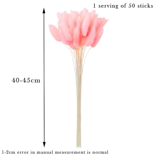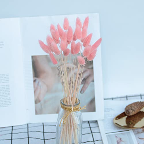 Snowtain 50 pcs Fiori Coda di Coniglio Natural Fiori Secchi Decorativi Erba della Pampas Decorative Erba Della Pampas Fiori Secchi Coda Coniglio Essiccata Mazzi Erba per Matrimonio (40cm rosa)