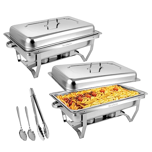 Snowtaros 2 Pack 9L Chafing Dish, Scaldavivande per Buffet in Acciaio Inox, Catering Buffet Set con Pinze e Cucchiai per Party, Feste, Matrimoni, Banchetti (Teglie 2 x 1/1)