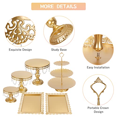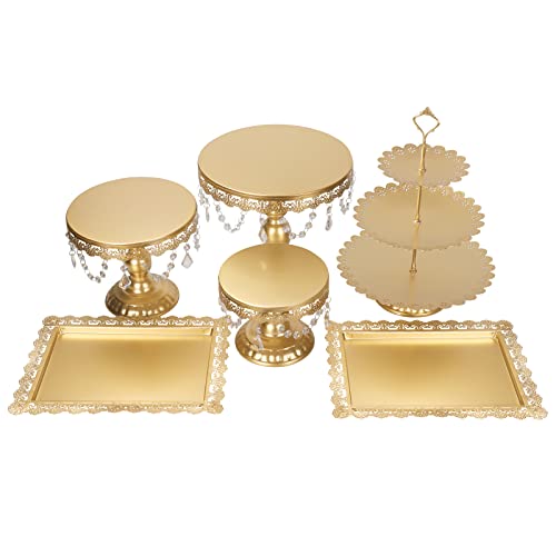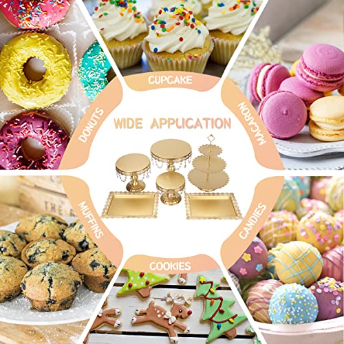 Snowtaros 6 Pezzi Alzata per Torte Rotonde in Stile Vintage, Piatto da Portata Dolci e Torta, 3 Tier Alzata per Torta, in Metallo, con Perline di Cristallo, Decorazione per Feste, Matrimoni (Oro-6pcs)