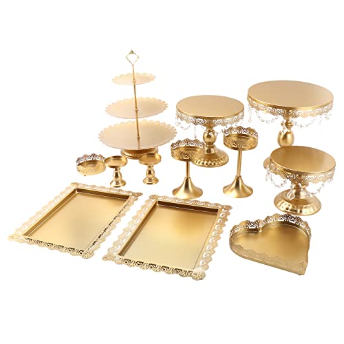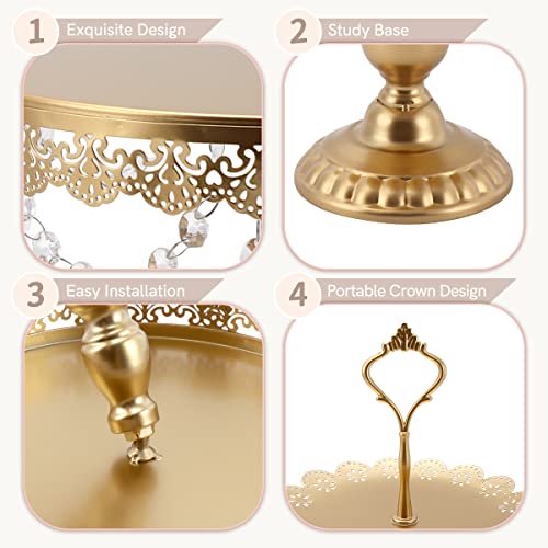 Snowtaros 12 Pezzi Alzata per Torte Rotonde in Stile Vintage, Piatto da Portata Dolci e Torta, 3 Tier Alzata per Torta, in Metallo, con Perline di Cristallo, Decorazione per Feste, Matrimoni (Oro)