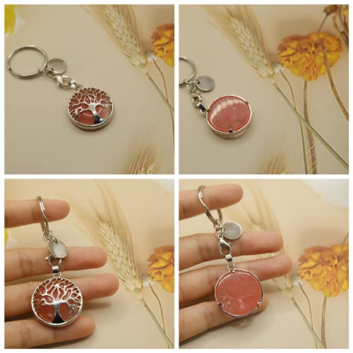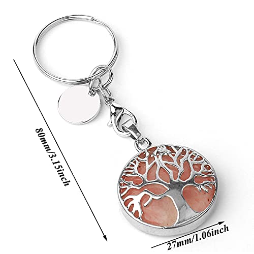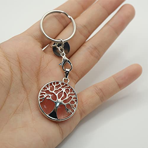 SNOWZAN Portachiavi a forma di albero della vita con lapislazzuli, in pietra naturale, con pietre preziose, ciondolo chakra, decorazione opale (rosa scuro)