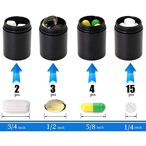 Buona tenuta all'aria: l'apertura del nostro portapillole portatile in alluminio presenta un anello di tenuta e design filettato a forma di O, che migliora notevolmente la tenuta dell'aria della mini scatola per pillole ed è impermeabile all'umidità e all'acqua. Non preoccupatevi quando vai in spiaggia o quando piove.