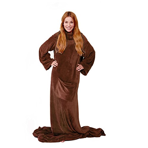 Snug Me Deluxe, coperta da divano con maniche e tasche extra sia davanti che per i piedi, 200 cm x 170 cm, Coperta plaid in pile marrone 220 g/m132