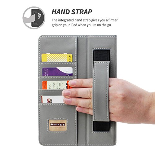 Snugg - Custodia in pelle per Apple iPad, a portafoglio, con funzione di supporto, con interno in fibra di nabuk protettiva Grigio grigio iPad Mini & iPad Mini 2 Card Slot 'Executive'