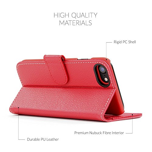 Snugg - Custodia a portafoglio in pelle per iPhone 7/8, con scomparti per carte di credito, colore: Rosso