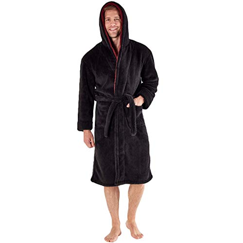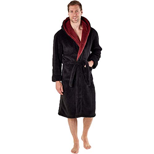Snuggaroo - Accappatoio da uomo in morbido pile con cappuccio Nero, bordeaux. XL
