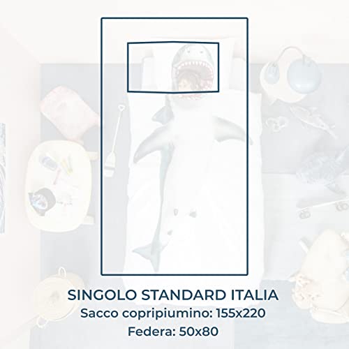 Snurk Parure Copripiumino e Federe con Stampa Squalo Alta Definizione 100% Percalle di Cotone di Alta qualità, per Bambini e Bambine, Colore Bianco, Misura - Singolo 155x220 Cm