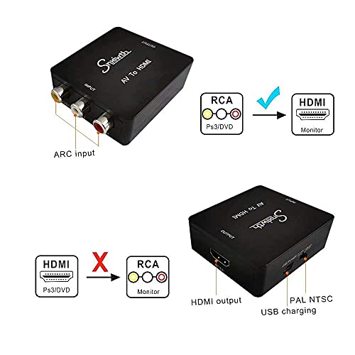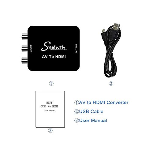 Snxiwth RCA a HDMI Convertitore,Adattatore da AV to HDMI 1080P, CVBS Composito Video Audio a HDMI Convertitore,con USB Cavo per TV PC PS3 Blue-Ray DVD XBOX SKY HD VHS VCR,Nero