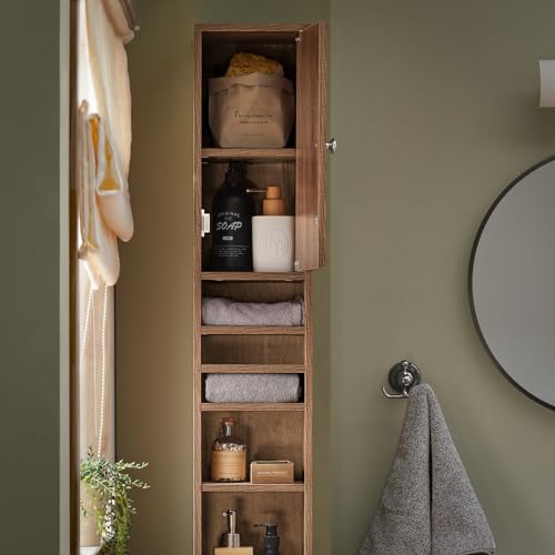 SoBuy Armadio Colonna bagno, Mobile bagno alto con 2 Ante e 1 cassetto altezza: 180 cm Marrone BZR34-PF IT
