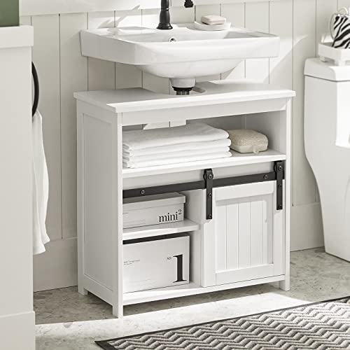 SoBuy Mobile lavabo con anta scorrevole Armadietto sotto lavabo Bianco 60x30x62cm BZR61-W