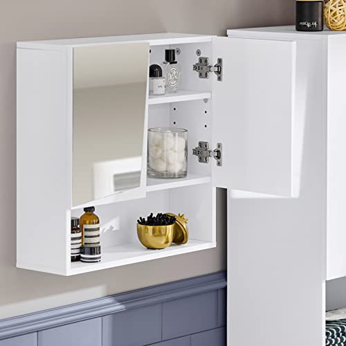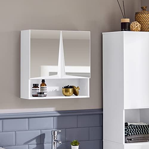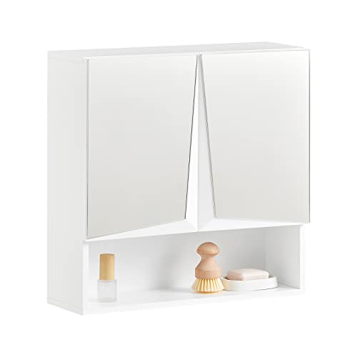 SoBuy Mobile lavanderia con 2 ante in specchio Pensile bagno salvaspazio Armadietto bagno da parete bianco L48*P17*A48cm Bianco BZR94-W