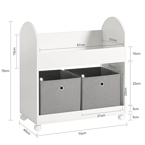 SoBuy Scaffale per bambini con 2 scatole in tessuto, librerie per bambini, Scaffale per giocattoli con ruote, 70x40x78cm KMB53-W