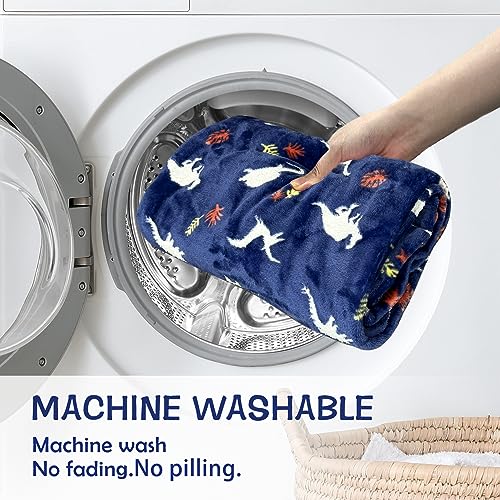 SOCHOW Coperta di Pile Dinosauri Giurassico, Fluorescente Si Illumina al Buio Super Morbida Coperta, coperta per tutte le stagioni per bambini 127 x 150 cm, Blu Navy