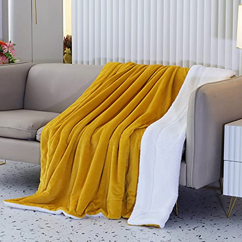 SOCHOW Coperta in Pile Sherpa Waffle, Coperta in Peluche Reversibile Super Soft Fuzzy Calda, Leggera e Soffice per Divano Letto Giallo 220 x 240 cm