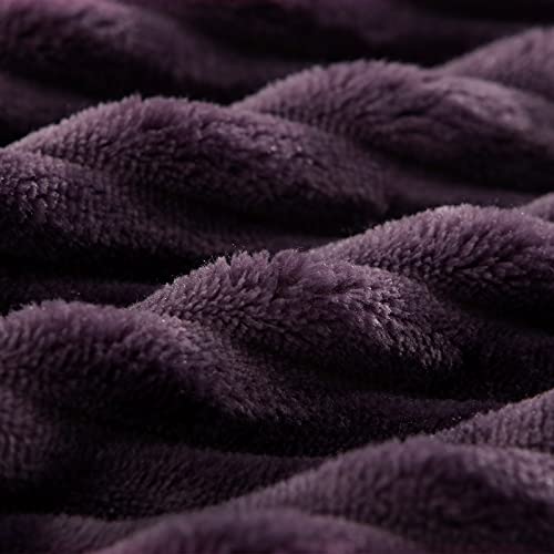 SOCHOW Coperta Plaid di Pile Sherpa e Flanella, Morbida Righe Plaid Divano Coperta Letto Matrimoniale 220 x 240 cm, Viola Profondo