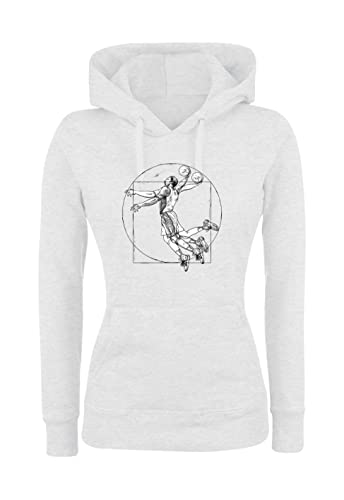 Social Crazy Felpa Donna con Cappuccio Basic Top qualità Top vestibilità - Giocatore di Basket Vitruviano - Divertente Humor Made in ITALY (Bianco, S)