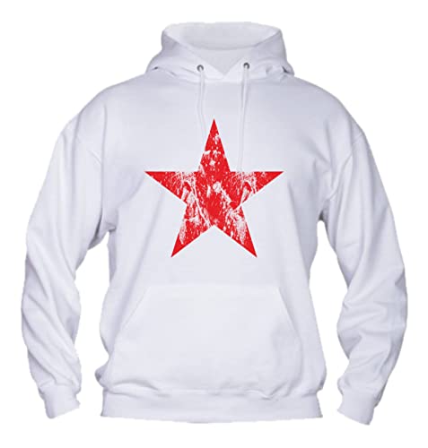 Social Crazy Felpa Uomo con Cappuccio Basic Top qualità Top vestibilità - Stella Rossa antichizzata Rivoluzione Red Star Vintage - Divertente Humor Made in ITALY (Bianco, M)