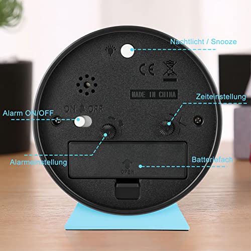 Sveglia per bambini senza ticchettio: usa il movimento ultra silenzioso, lo spazzamento silenzioso non fa rumori fastidiosi, funziona silenziosamente, nessun ticchettio fastidioso, crea un ambiente tranquillo. (Per non compromettere la durata della sveglia, seguire la direzione indicata dalla freccia durante l'impostazione dell'orologio e della sveglia.)