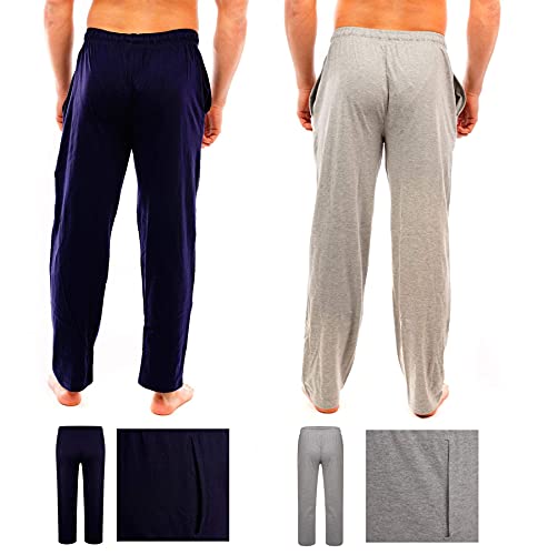 Sock Stack - Pantaloni pigiama da uomo, in jersey, con fondo in PJ, 100% cotone, confezione da 2 blu navy/grigio. 4X-Large