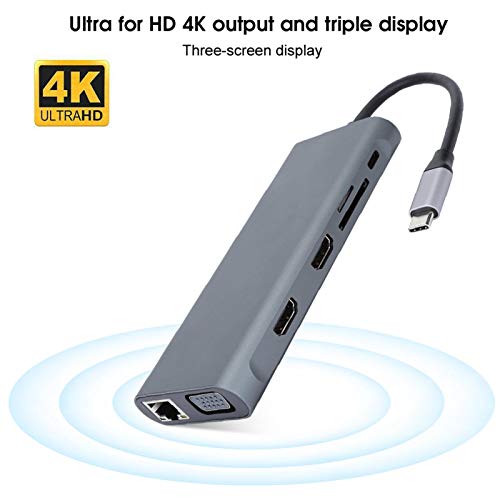【DISPLAY A TRE SCHERMATE】 Il dock di espansione hub USB C 12 in 1 dispone di tre schermi: uno schermo per l'uscita hdmi, uno schermo per hdmi o vga e un laptop con schermo e dispone di più interfacce per soddisfare le tue esigenze.