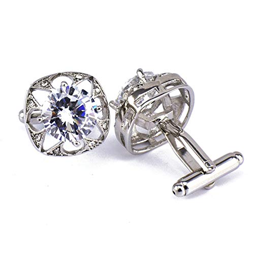 Socoz Gemelli Uomo,Acciaio Inossidabile Gemelli della Camicia Uomo Crystal Hollow Round Argento Gemelli
