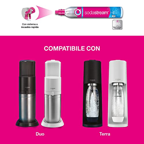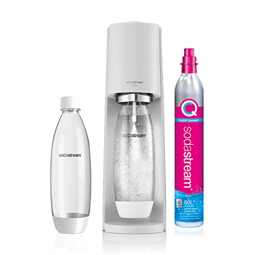 Sodastream Gasatore Terra White Value Pack x2 con 2 bottiglie fuse lavabili in lavastoviglie da 1L e 1 cilindro di CO2 Quick Connect per gasare fino a 60L