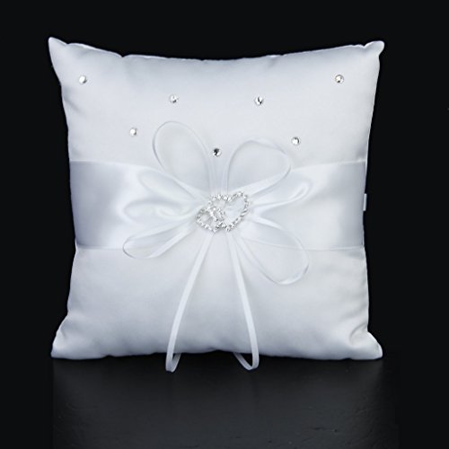 SODIAL (R) Bianco doppio cuore di cristallo strass cuscino dell'anello nozze anello fede