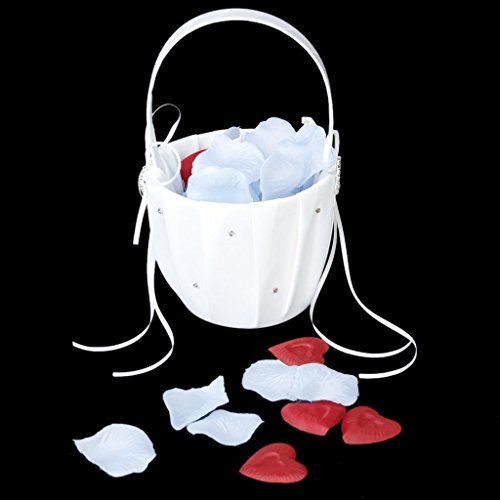 SODIAL (R) Cesto di cristallo strass decorazione raso bianco doppio cuore ragazza di fiore