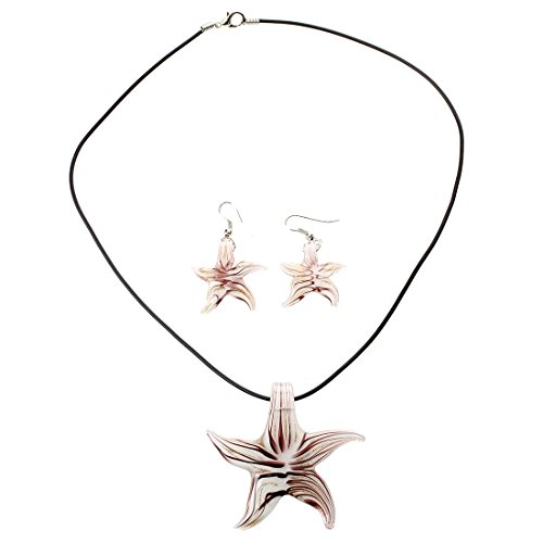 SODIAL(R) SET COLLANA ORECCHINI PENDENTE IN VETRO MURANO STELLA