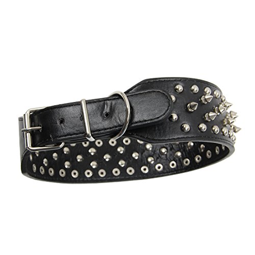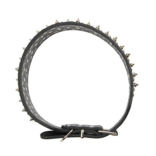 SODIAL(R)Collare cane in pelle con rivetti 2'' largo 31 rivetti 52 borchie nero M