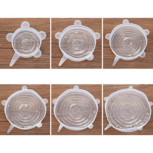 SODIAL 6x Custodie in silicone, 6-Pack di varie dimensioni Coperchi in silicone per ciotola, lattina, barattolo ecc