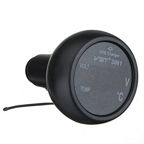 SODIAL(R) 3 in 1 Digitale ROSSO BLU LED Voltmetro Termometro USB 12V 24V