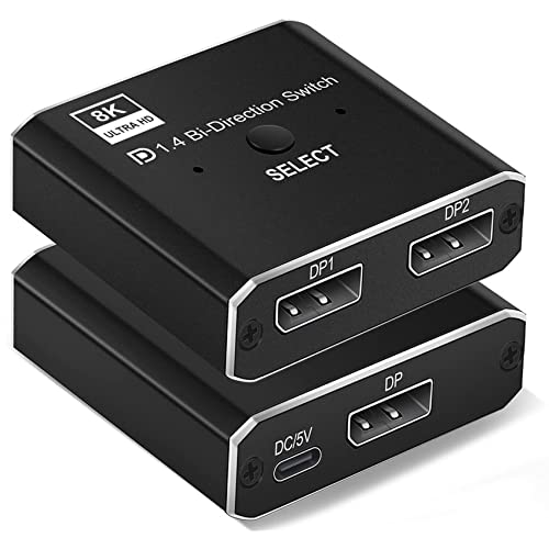 SODIAL Displayport1.4 Switch 8K Displayport Interruptor divisore bidirezionale Displayport KVM 2X1 1X2 Puerto de pantalla 8K@30Hz 4K@120Hz