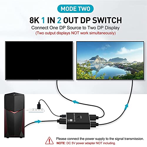 Switch DP 8K bidirezionale: questo switch Display Port consente di collegare due sorgenti DP a un display DP o una sorgente DP a due display DP. significa che è un interruttore a due vie Display Port con commutazione one-touch senza alcuno o sfarfallio. Se avete bisogno di passare da un computer all'altro, l'interruttore DP sarà perfetto . Suggerimento: il cavo DP collegato a questo interruttore DP non può 3.