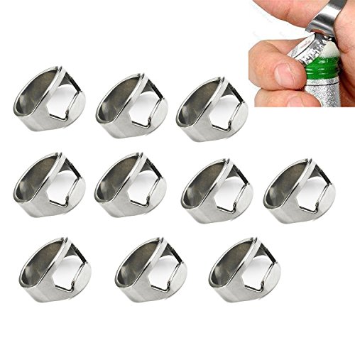 SODIAL(R) 10x Handy argento cromato in acciaio inossidabile della barra di metallo dito Bottle Cap Top Opener portachiavi + rimovibile bianco Blocco di aspirazione Ganci