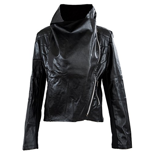 SODIAL(R) Moda Vintage Donna Cappotto Giacca Moto Snello In Pelle PU morbido Con Cerniera Nero L