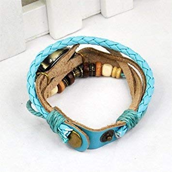 SODIAL(R) Orologio a quarzo bracciale in pelle da donna - Azzurro