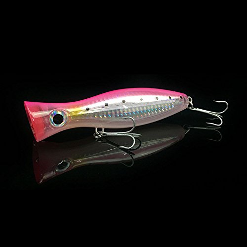 SODIAL 1 Pz Pesca Popper 3D Augen con ancorette 12 cm 42g topwater richiamo Duro plastica Morbida isca Artificiale richiamo di Pesca Affrontare Rosa