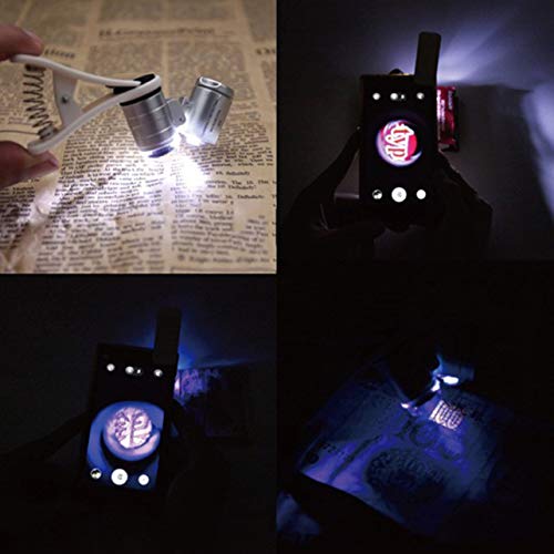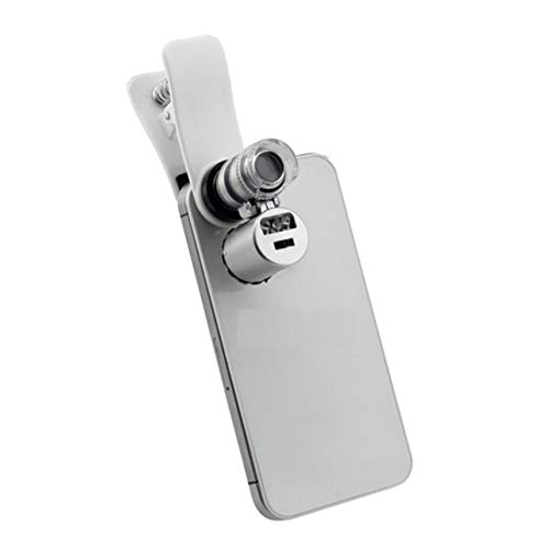 SODIAL(R) 60X universale mini portatile clip LED microscopio magnifier lampadina UV del raggio di lente di ingrandimento Argento