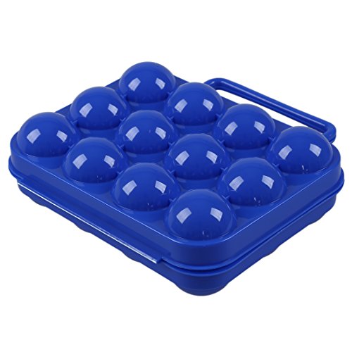 SODIAL(R) Blu Uova di plastica pieghevoli Portare il contenitore di case (per 12 uova) per il contenitore di picnic