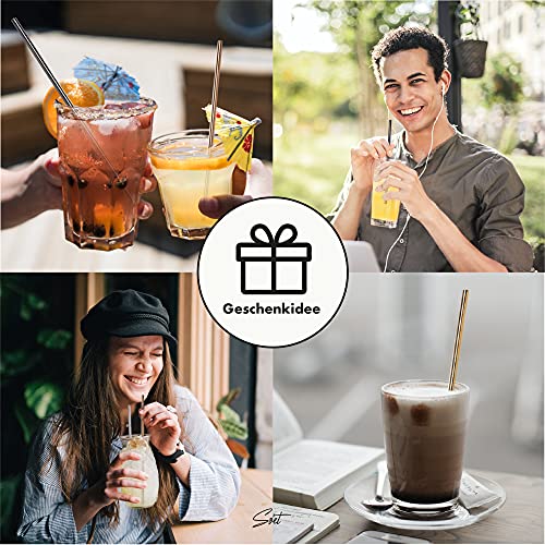 acciaio inossidabile. Il materiale di alta qualità è antiruggine, testato per alimenti e non lascia alcun sapore di metallo. Ciò rende le nostre cannucce lavabili in lavastoviglie ed estremamente durevoli